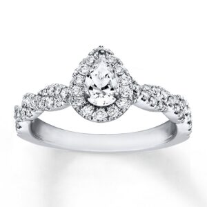 Engagement Ring 1-3/8 ct tw Pear/Round 14K White Gold